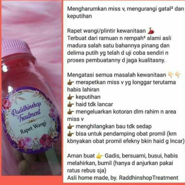 Harga obat herbal vagina rapet dan keset rp 50 rb, pemesanan ke 085725009509 / 0852 2909 9695 7 cara pemesanan galian rapet madura. Jamu rapet wangi,,makin disayang suami bahan : 5 cara konsumsi jamu galian rapet madura sumber madu. Jamu rapet jamu pinang jamu wanita manjakani jamu kunyit manjakani. Ternyata temulawak bukan hanya mampu meningkatkan nafsu makan loh. 3.1 jamu galian rapet madura sumber madu. Produk herbal jamu untuk merawat daerah kewanitaan. Rapet wangi juga terbukti untuk mengobati keputihan serta membantu untuk menambah gairah pasangan suami istri. Kandungan alami seperti daun sirih bisa mengurangi lendir berlebihan pada miss v, membersihkan daerah intim kamu dan menghilangkan bau raj sedap. Hal inilah yang bisa membuat vagina mengeluarkan aroma yang wangi dan membuat pasanganmu ketagihan berhubungan seks denganmu. 7.0.1 harumita jamu empot ayam madura. Belum ada laporan efek samping mengenai rapet wangi.